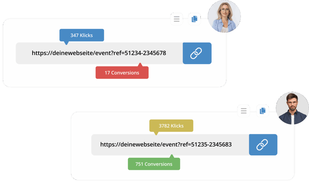 Jeder Kunde bekommt vom System seinen eigenen Link zur Verfügung gestellt, den er an Freunde und Bekannte weiterleiten kann. Diese können sich dann über diesen Affiliate-Link in dein Formular eintragen.
