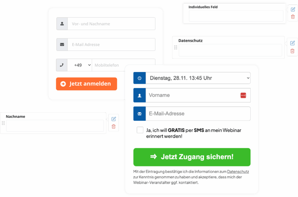 - Werde unabhängig von vorgefertigten Formularen anderer Webinar-Anbieter